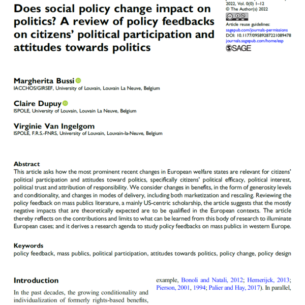 Does social policy change impact on politics? A review of policy feedbacks on citizens’ political participation and attitudes towards politics