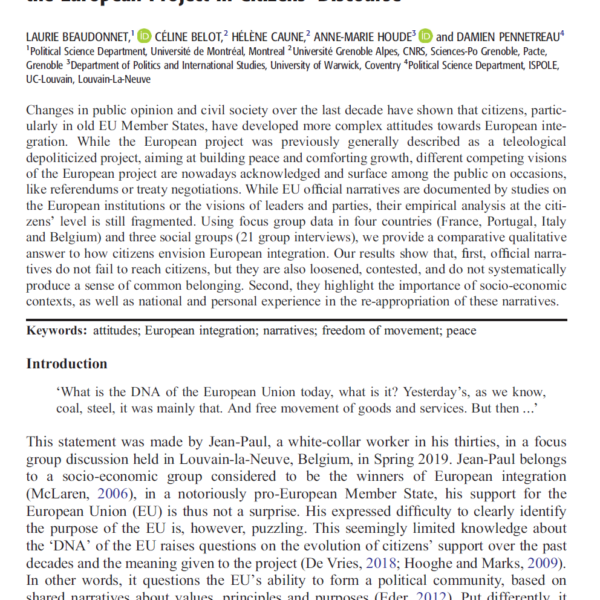 Narrating Europe: (Re-)constructed and Contested Visions of the European Project in Citizens’ Discourse